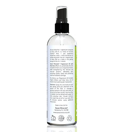 - ELIMINATE PAIN THE NATURAL WAY. Our company, Seven Minerals, created our Mineral Oil Spray with you in mind. It is pure, safe, and effective for even the most sensitive skin. The Organic Aloe Vera, makes our Mineral Oil Spray extra soothing, less itchy, and absorbs quickly and safely into your skin. Give yourself the gift of natural healing, and consider adding an extra one in your cart for your best friend. You found a solution worth sharing!