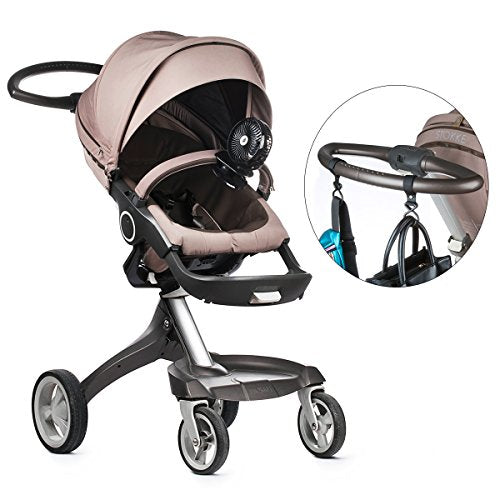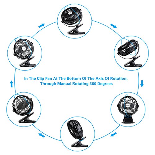 - Stroller Fan---360 Degree Rotation, The fan will swivel and angle up or down--both actions able to do 360 degrees. Just adjust the angle to whatever angle you want.