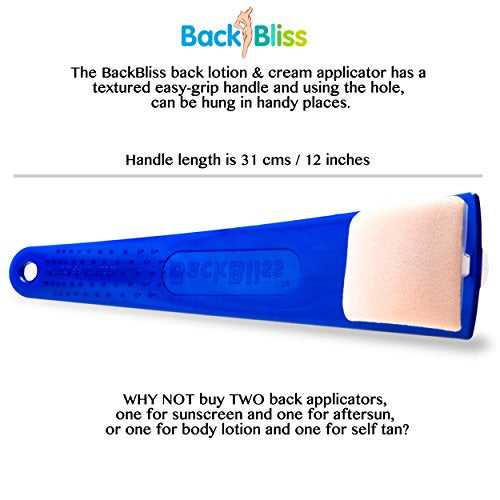 - REVOLUTIONARY WAY TO APPLY LOTION - Your self tan back applicator is built to last. Ergonomically tested with strong scratch-resistant polycarbonate handle, suitable for almost all body types. Smooth application means no missed bits, streaks or patches. BackBliss suntan applicator will revolutionize the way you apply your lotion, cream, ointment, self tanner and medication! In the unlikely event you experience a problem, simply contact our Customer Care Team who will happily take care of you!