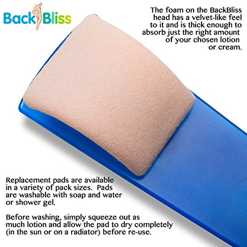 - HYGIENIC EASY TO CLEAN FOAM PADS - BackBliss cream back applicator pads are hygienic, with no moving parts, roller balls or hard to clean containers. Easy to wash, simply squeeze out lotion and allow pad to dry before re-use. What's more, replacing the self-adhesive pad of your sunscreen applicator could not be simpler! Wonderfully soft even on sensitive skin, with the right absorption thickness, the pad's wings wrap around the pad-head to ensure no hard edges touch your delicate skin.