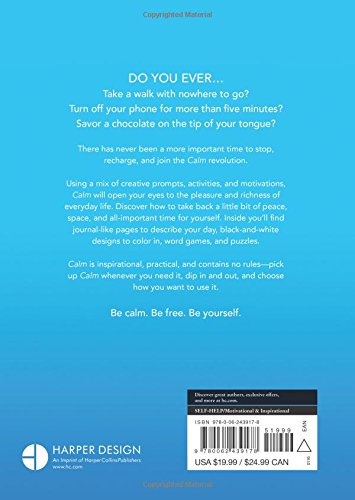 Calm can be used multiple times a day or whenever you need it to find a little peace. Take a walk without a fixed destination, savor a piece of chocolate on the tip of your tongue, plant a seed, doodle aimlessly, turn off your mobile phone for five short minutes. Smile, breathe, and go slowly. Calm your mind—and change your world.