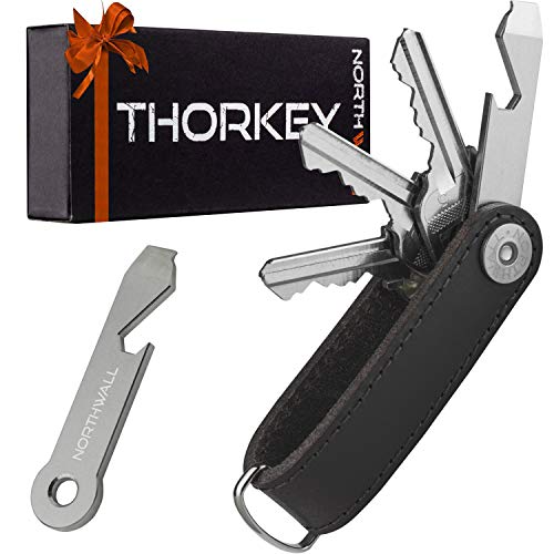 - COMPACT SMART DESIGN: This top notch leather keychain features a very practical, compact design that makes it perfect to fit your pockets. Clutter and holes in your pockets are a thing of the past with the ThorKey. Your keys are stored neatly with the space saving design. The perfect housewarming gift for every man and woman!