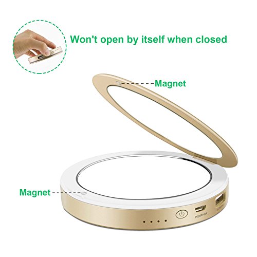 - Magnet Design Prevent Unwanted Opening --- This power bank mirror has built-in with magnets, so the mirror won't open by itself in the handbag;