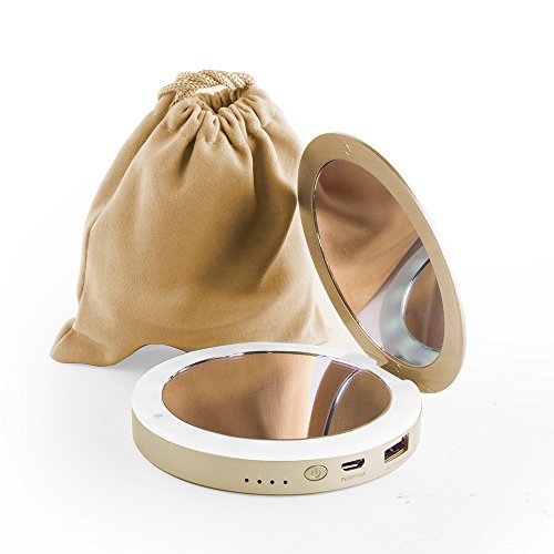 There's nothing better than a beauty tool that can multi-task so well it resembles a secret spy gadget. This looks like your typical cute and compact lighted There's nothing better than a beauty tool that can multi-task so well it resembles a secret spy gadget. This looks like your typical cute and compact lighted handheld mirror, but it performs doubly duty as a USB charger to fit a variety of devices. Aside from the peace of mind it will provide when you're out and about with a dying phone, this is an amazing battery-operated mirror — one with magnification and long-lasting LED lights.