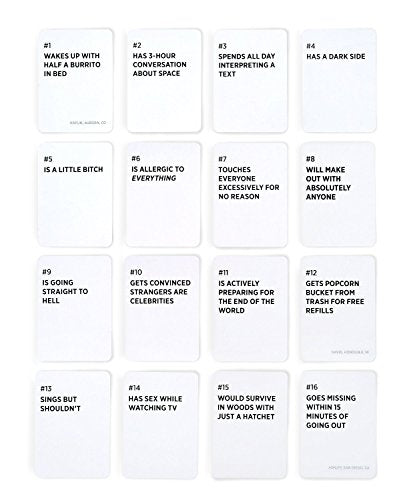 - 250 prompt cards to decide who in the group is MOST LIKELY TO...