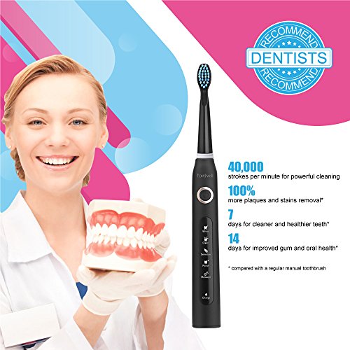 - POWERFUL CLEANING AS JUST GET OFF DENTIST'S CHAIR. This electric toothbrush with 40,000 micro-brush per minute. Remove up to 100% more plaques and stains, compared with a regular manual toothbrush. Enjoy clean and healthy teeth in 7 days and improve gum and oral health in 14 days. 5 YEARS LIFE DESIGN WITH 1 YEAR WARRANTY AND 180 DAYS NO HASSLE RETURN.