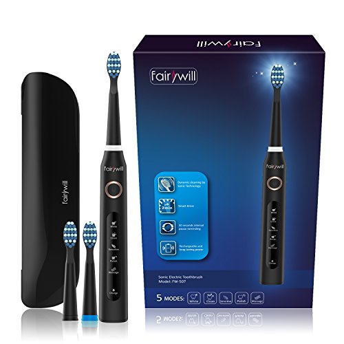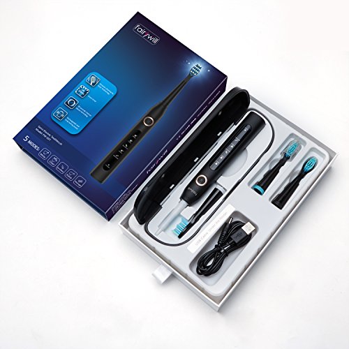Fairywill Travel Electric Toothbrush Clean as Dentist Rechargeable Sonic Toothbrush with Timer 5 Optional Modes Waterproof Crystal Black, Travel Case Included Travel Friendly