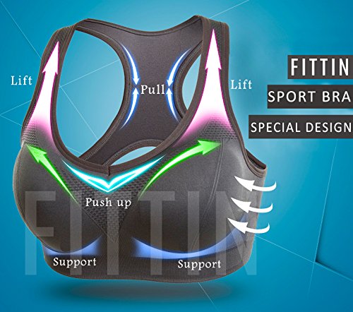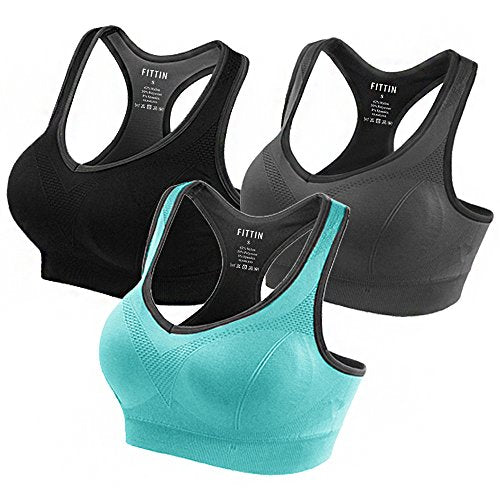 Fittin Womens Padded Sports Bras Wire Free with Removable Pads Grey ,XL,3 pack