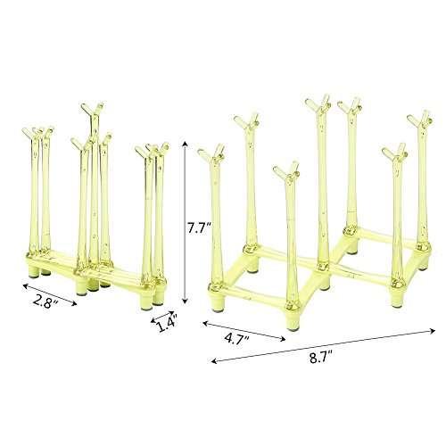 stand does what few ordinary drying racks can: it provides enough space to hold wet glasses and mugs, and prevents them from getting moldy and smelling bad. Each rack is made sturdy PP material and holds six cups, glasses, or bottles.