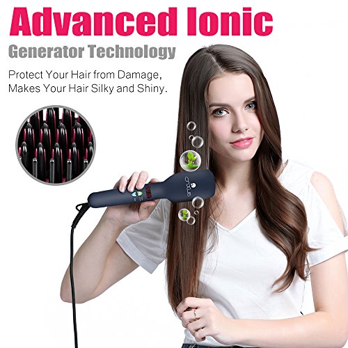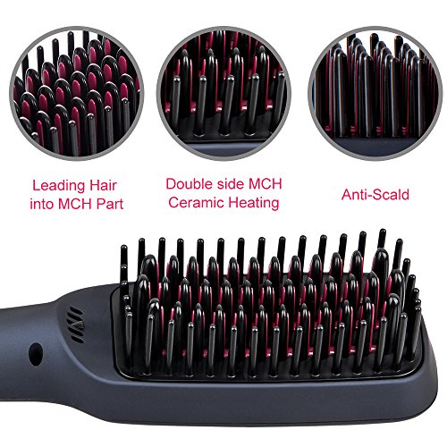 - ✿【MCH HEATING】Advanced MCH heating has incomparable superiority than PTC in market, rapid, uniform heating and homothermal. Simply turn it on, hair straightening brush temperature will be displayed on the LED screen. Wait less than a minute and then straighten your hair. The adjustable heat temperatures from 150℃(300℉) to 230℃(450℉) allow you to match your specific hair type: thin, fine, bleached, wavy or curled. Just 60s, it can heat up to the setting temperature and offer a great result!
