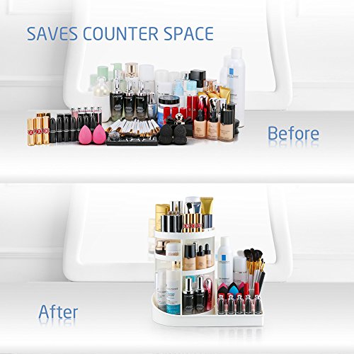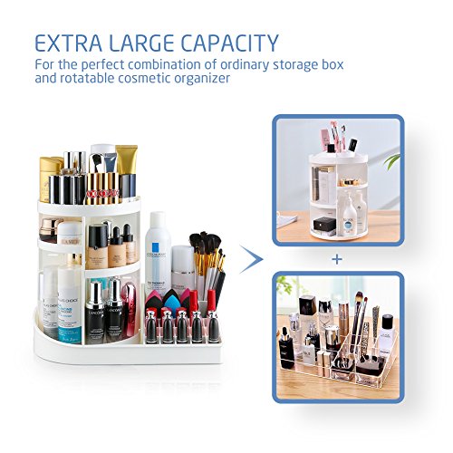 - DUAL DESIGN: Perfect combination of 360° rotatable cosmetic organizer and ordinary cosmetic storage box; can be rotated for easy access to your skincare products; keeps all of your cosmetics well organized, including lipsticks, makeup brushes and more(Please use the rubber rings and it can strong your organizer)