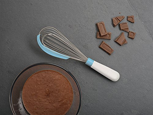 Details: This innovative stainless-steel whisk helps streamline a host of mixing tasks with its unique design, which incorporates a handy silicone bowl scraper. It allows you to make batters and cake mixes with ease and helps empty bowls quickly. A neat, multi-function utensil - you'll wonder how you did without. Dishwasher safe.