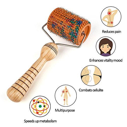 This quality tool with wooden handle & soft & pliable rubber roller with needles of 5 different metals pampers your body.