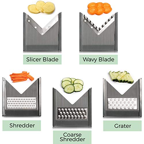 Details: This is the only mandoline on the market with Mueller's patented dual knob fully adjustable mechanism. Others offer just a few preset measurements and our quality is absolutely unmatched at this price point and beyond.