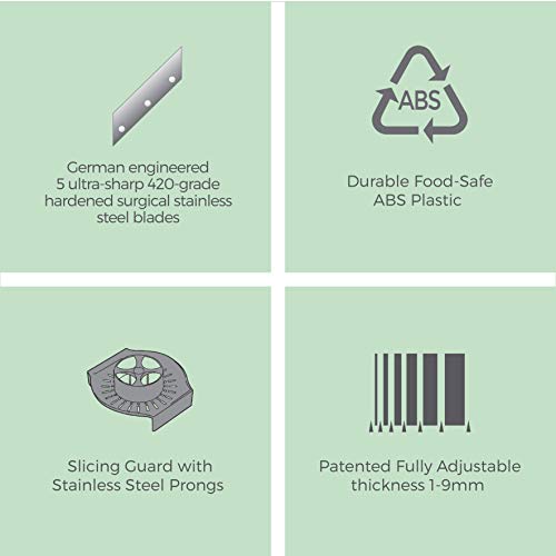 - UNMATCHED QUALITY - German engineered 5 ultra-sharp 420-grade hardened surgical stainless steel blades. Made from high quality, 100% BPA-free food grade, durable reinforced ABS plastic. Designed to be easy to operate and clean and dishwasher safe