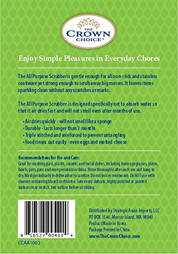 The All Purpose Scrubber is designed not to absorb water so that it air dries fast and will not smell even after months of use.