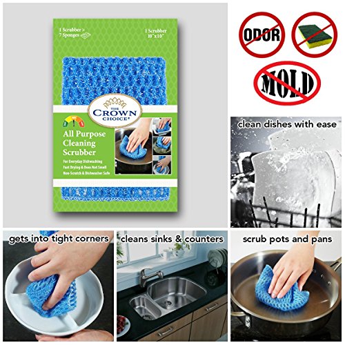 - ✓ NO ODOR and DOES NOT ABSORB: No more smelly sponges. Quick drying prevents foul odors from bacteria growth. Easy to sanitize in the dish washer or washing machine.