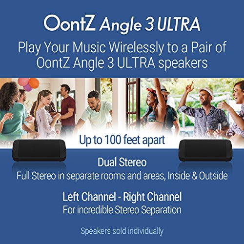 - PLAY YOUR MUSIC TO TWO OONTZ ANGLE 3 ULTRA SPEAKERS - Wirelessly connect two OontZ Angle 3 ULTRA speakers together, one speaker plays left the channel and the other plays the right, for incredible stereo separation; set each speaker to play full stereo and place the speakers in different areas up to 100 unobstructed feet apart. To play the audio from a video, your TV or device needs to be connected to one of the OontZ Angle 3 ULTRA speakers using the 3.5mm audio cable; Speakers sold separately