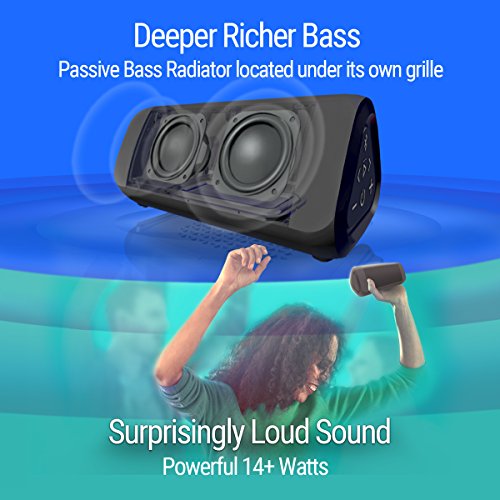 - SUPERIOR SOUND QUALITY WITH RICH FULL BASS - Our digital audio processor pumps up the bass and enhances the clarity of the mids and highs; 14 Watts of power delivers surprisingly loud room filling volume from the dual precision stereo drivers and proprietary bass radiator; distortion-free stereo sound even at max volume - the perfect home speaker and travel speaker