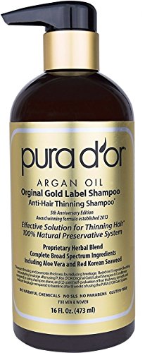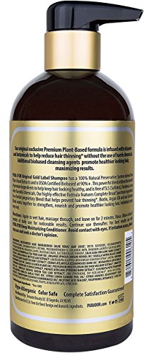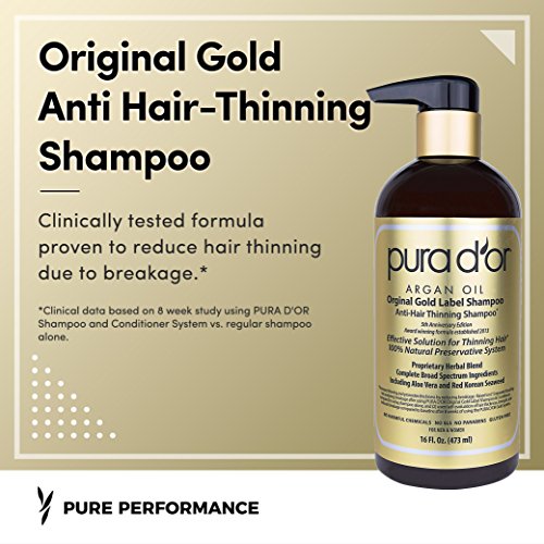 Details: PURA D'OR Original Gold Label Shampoo is a clinically tested formula proven to reduce hair thinning due to breakage, increase volume, strength and shine.* Our proprietary blend of 17 key active ingredients, natural extracts, and essential nutrients nourish hair to boost strength and resist breakage. Packed with a powerful blend of Biotin, Nettle, Pumpkin Seed, and Black Cumin Seed Oil to increase volume and thicken hair. Free from harsh chemicals, environmentally responsible, hypo-allergenic, vegan, and cruelty free.