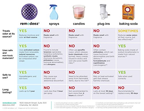 Remodeez outsmarts smell by neutralizing odors at their source. While most products rely on harsh chemicals and fragrance to cover up smells, remodeez neutralizes odor using activated charcoal derived from sustainable coconut husks to absorb odor and moisture, hindering mildew and bacteria growth. With proper care, remodeez will last up to 1 year.