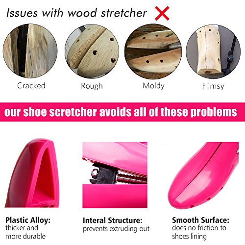 - MORE DURABLE & SMOOTHER THAN WOODEN SHOE STRETCHER: Unlike wooden shoe trees, we choose polyurethane plastic and premium steel shaft as material which are more environmental friendly. The plastic shoe stretcher will not go corroded or deformed as time goes by like wood shoe expander, which make it more durable.