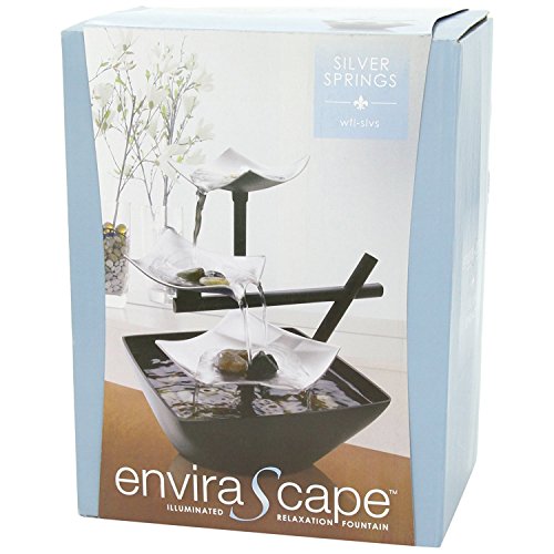 - DECORATIVE TABLETOP FOUNTAIN: Showcase EnviraScape's Silver Springs Relaxation Fountain on display to bring a calming, Zen-feel to any room. It is just the right size to add a decorative accent to any tabletop, bathroom sink, and vanity or office desk. It features a 3-tiered waterfall, natural stones, and a large basin. The tiers create several streams of water creating a gentle soothing sound of water. The water flow replicates the sights and sounds of a tranquil spring