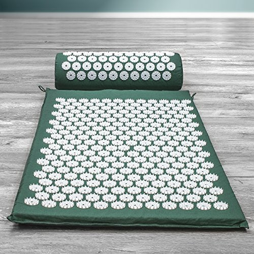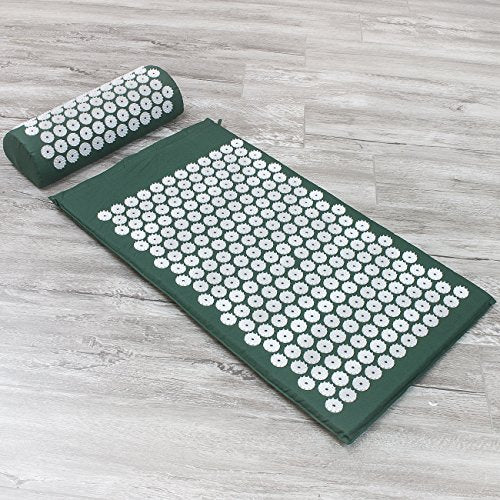 - ACUPRESSURE MASSAGE MAT AND NECK PILLOW (GREEN) - Provides thousands of stimulation points, for immediate back pain relief it also improves sleep, relieves stress, aches, pains, muscle tension, Blood Circulation and energy levels
