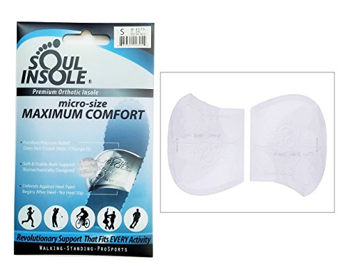 >>>>SIZE MEDIUM - FOR Women's 8.5+, Men's 6.5-10.5<<<<<< Soul Insole's micro-size Maximum Comfort Orthotic relieves pressure and pain without crowding shoe fit and without causing heel slip. Men's and Women's sandals, dress shoes, high heels, sports shoes, running shoes, minimalist shoes, soccer shoes, dance shoes and more can be made more comfortable, supportive and balanced!