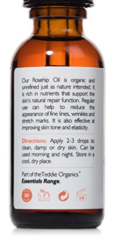 - YOUR BOTTLE CONTAINS JUST ONE INGREDIENT - Organic, Cold Pressed, Rosehip Seed Oil. Check the pictures opposite for proof. Your oil comes in a dark amber bottle to minimise light seepage and with an easy to use dropper top. Choose between the 1oz Trial-Gift Size or the 4oz Best Value Size. Don't forget to use your Coupons for Multi-Buys!
