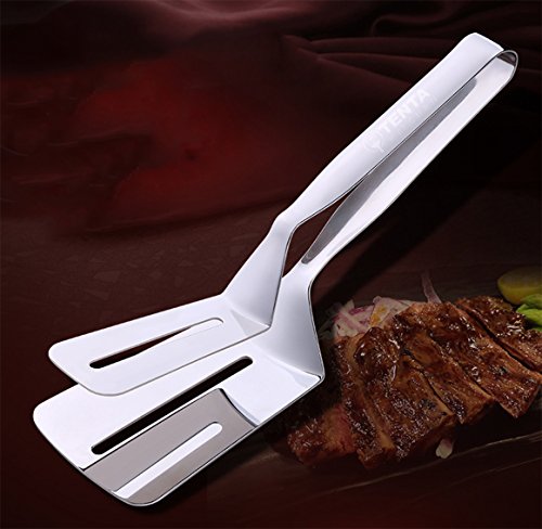 Details: Tenta Kitchen 10 Inch Premium One-Piece Stainless Steel Good Grip Multipurpose Food Clip/Fried Steak Clamp/Barbecue Tongs/Beefsteak Turner Flipper