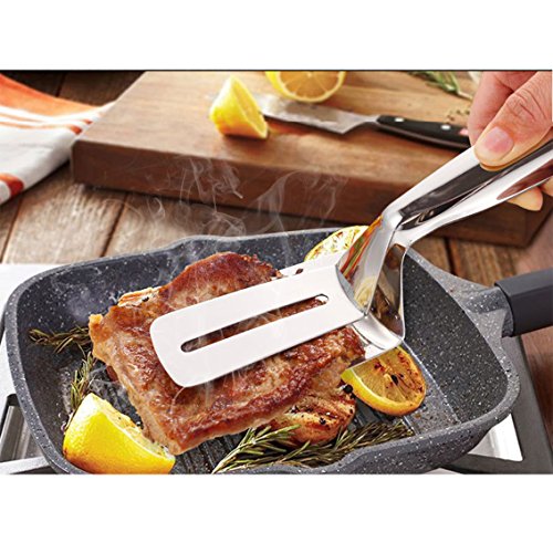 - Wide mouth clamp can easily grip no matter small as beans or big as beefsteak or bread,perfect as serving tongs,cooking tongs,grilling tongs,slotted egg fish turner spatula,bread clamp,beef steak turner flipper.