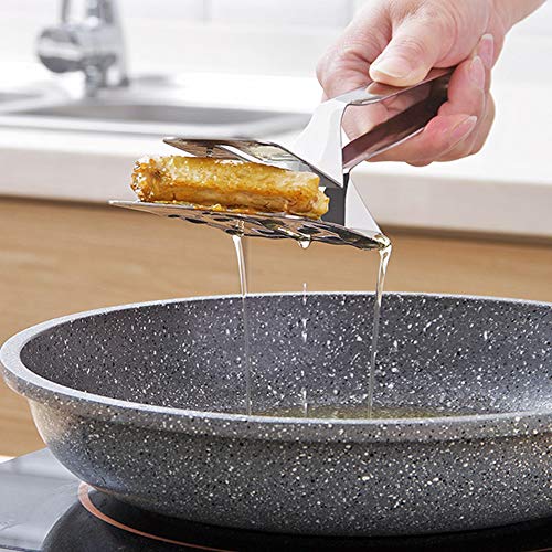 - Slotted clamp drains excess grease back into the pan to make food more healthy.As you see,it also can be a good slotted turner spatula for it's bigger than normal tongs and strong enough to grip,turn,grill the fish,beefsteak and meat pancake.