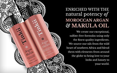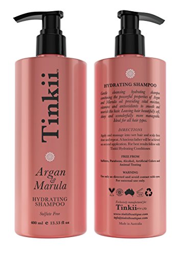 - is animal-friendly and free of sulfates, cocamides, parabens, alcohol and artificial colors.We know you'll love itIf you're not head-over-heels in love with Tinkii Argan and Marula Hydrating Shampoo and Conditioner, simply let us know and we'll refund 100% of your money.