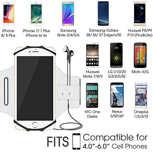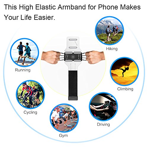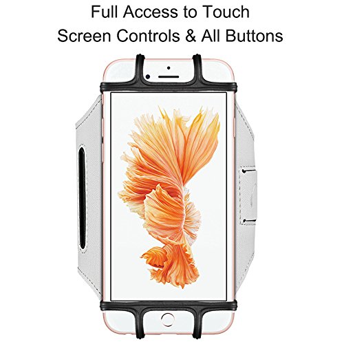 Details: Cell Phone Armband for Workout Biking Walking for iPhone X 8 Plus 8 7 Plus 7 6 Plus 6 6S, Galaxy S8 S7 S5, Google Pixel, Adjustable Reflective Band Running Armand with Key Holder(Silver)