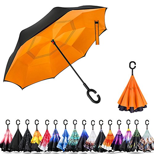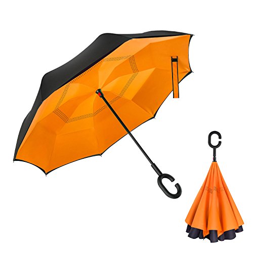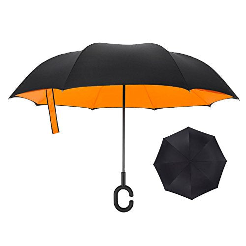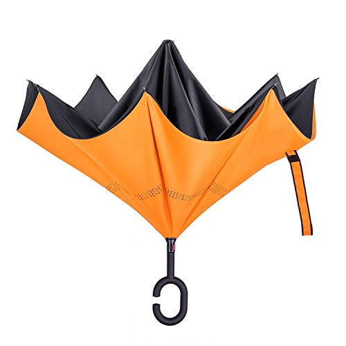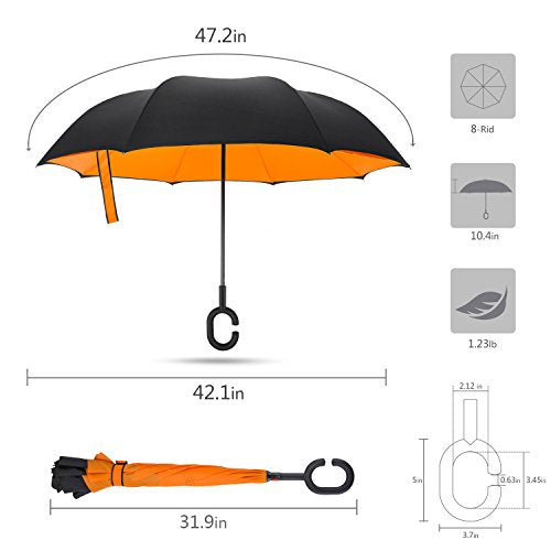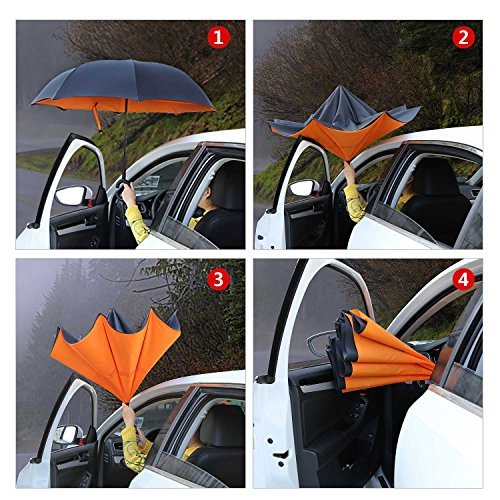 - Unique Inside-out Design: Reverse folding umbrella design concept, which means the outside wet layer will become the inside layer after close, then the dry inside exposed. so it could prevent water from dripping. keeping floors and cars dry. make your life more convenience.