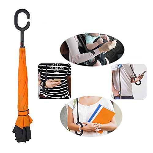 - Fashion C-shaped Handle: Comfortable frosted ergonomic hand grip, allows you to play with your mobile phone when you hold this rain umbrella with your hand wrist. or lift the bag in a rainy day, or holding a baby in your arms when you are walking. It is really great for phone users and mothers.